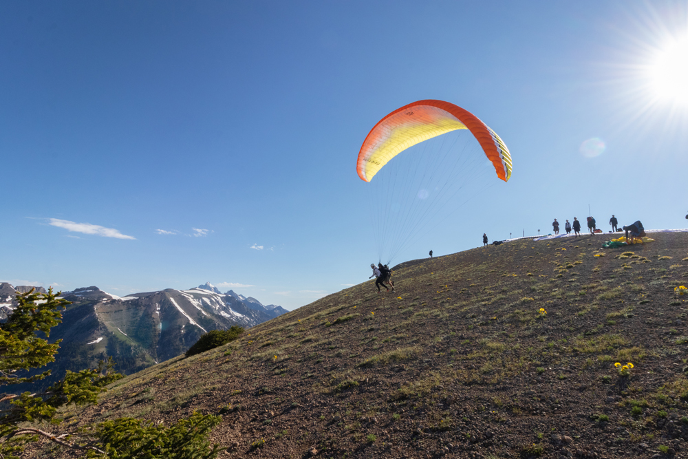 Sail through the air above Teton Village on a paragliding tour. While in flight, observe the diverse and cherished elements of Jackson Hole: its mountains, valley, and Snake River. No experience is necessary to partake in this thrilling activity—an experience many visitors to this region consider the most memorable part of their trip to Wyoming. Professional pilots paraglide in tandem, providing confidence and security while taking this fantastic leap. Take a few running steps, sit back in a comfortable chair harness, and relish every minute of being airborne in the Tetons.